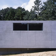 The box-space sets so that the sunshine and the privacy from the outside may be interrupted, and roof-space is allotted in the direction which faces nature. A parking lot is buried in a site slope by a half , located at the mountain side. Zelkova trees are planted in the yard so that sunbeams shining through branches of trees may be dropped on a house.